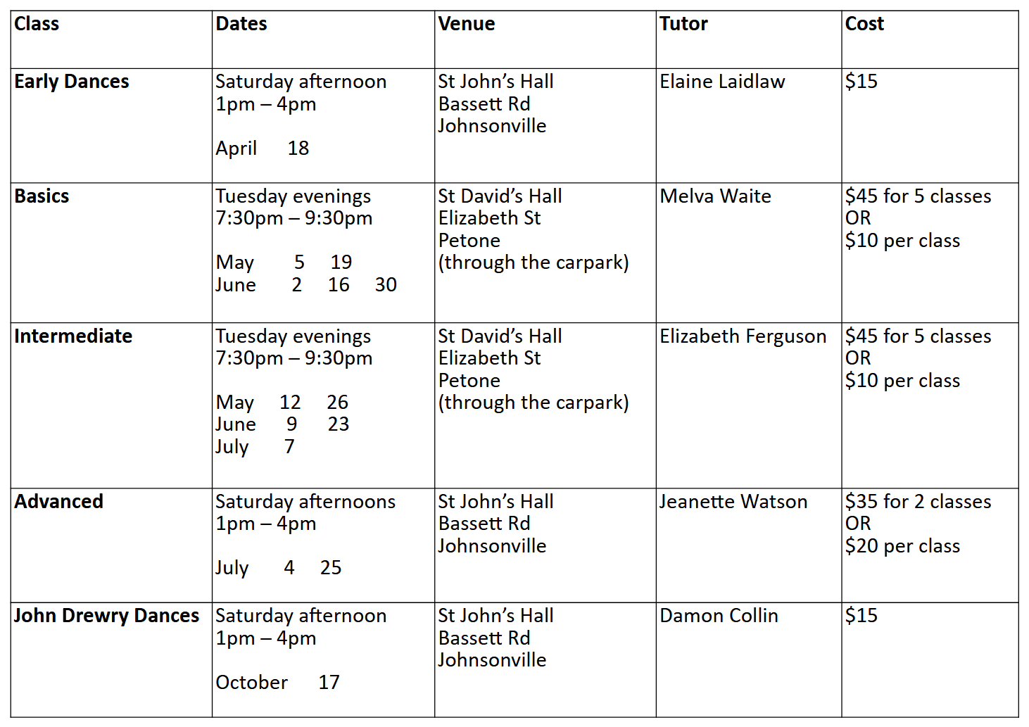 Please be aware if there are not sufficient registrations leading up to the start of the classes, they may be cancelled.